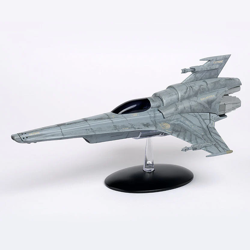 The Viper MK VII was the modern design of fighter that was in service when the Cylons launched their attack on the 12 Colonies. It had the same basic layout as earlier models of Viper but its computer systems were vulnerable to Cylon attack. After they escaped, both the Galactica and Pegasus produced versions without the vulnerable computer systems. The Eaglemoss model measures slightly over 10.5 inches (27 cm) long.